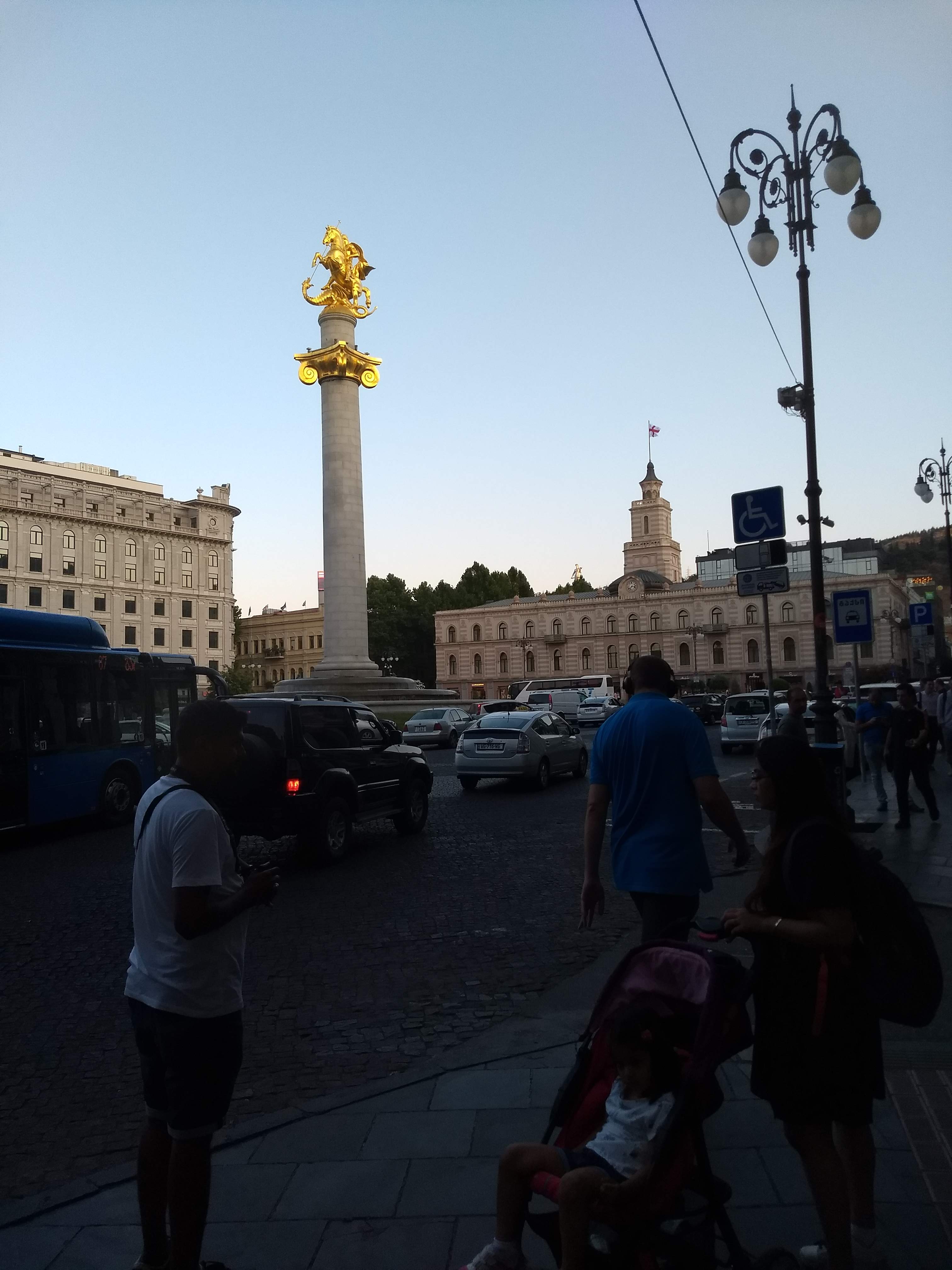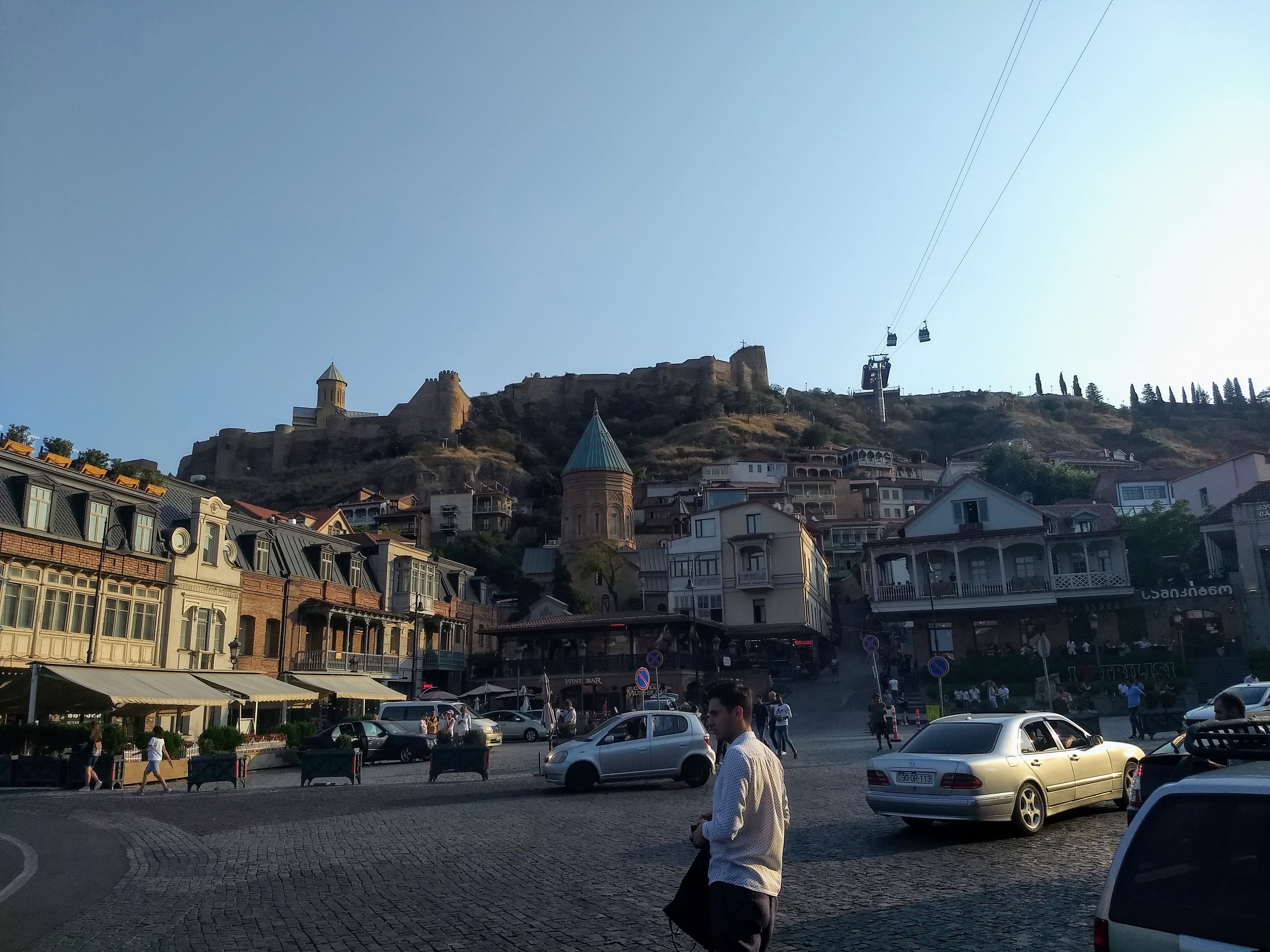 Angekommen am Flughafen von Tbilisi wurden wir nach einer Weile des Wartens auf unser Gepäck von unseren Landesmentoren Levan und Megi in Empfang genommen und erstmal zum etwas ausruhen und schlafen in unsere Unterkünfte gebracht. Auf der Fahrt vom Flughafen fühlte ich mich sehr an Spanien erinnert und auch ein paar Tage später würde ich sagen, dass Tbilisi viel mediterranen Flair ausstrahlt, was auch von den zur Zeit sehr warmen Temperaturen von über 30° C begünstigt wird. Ich wohne jetzt seit einer Woche bei Iva, einem ehemaligen Süd-Nord-Freiwilligen der auch schon im letzten Jahr einen der deutschen Freiwilligen beherbergt hat und mit dem ich mich gut verstehe, nicht zuletzt wegen unserem gemeinsamen Hang zu US-Comedy-Shows, wie „Last Week Tonight“.